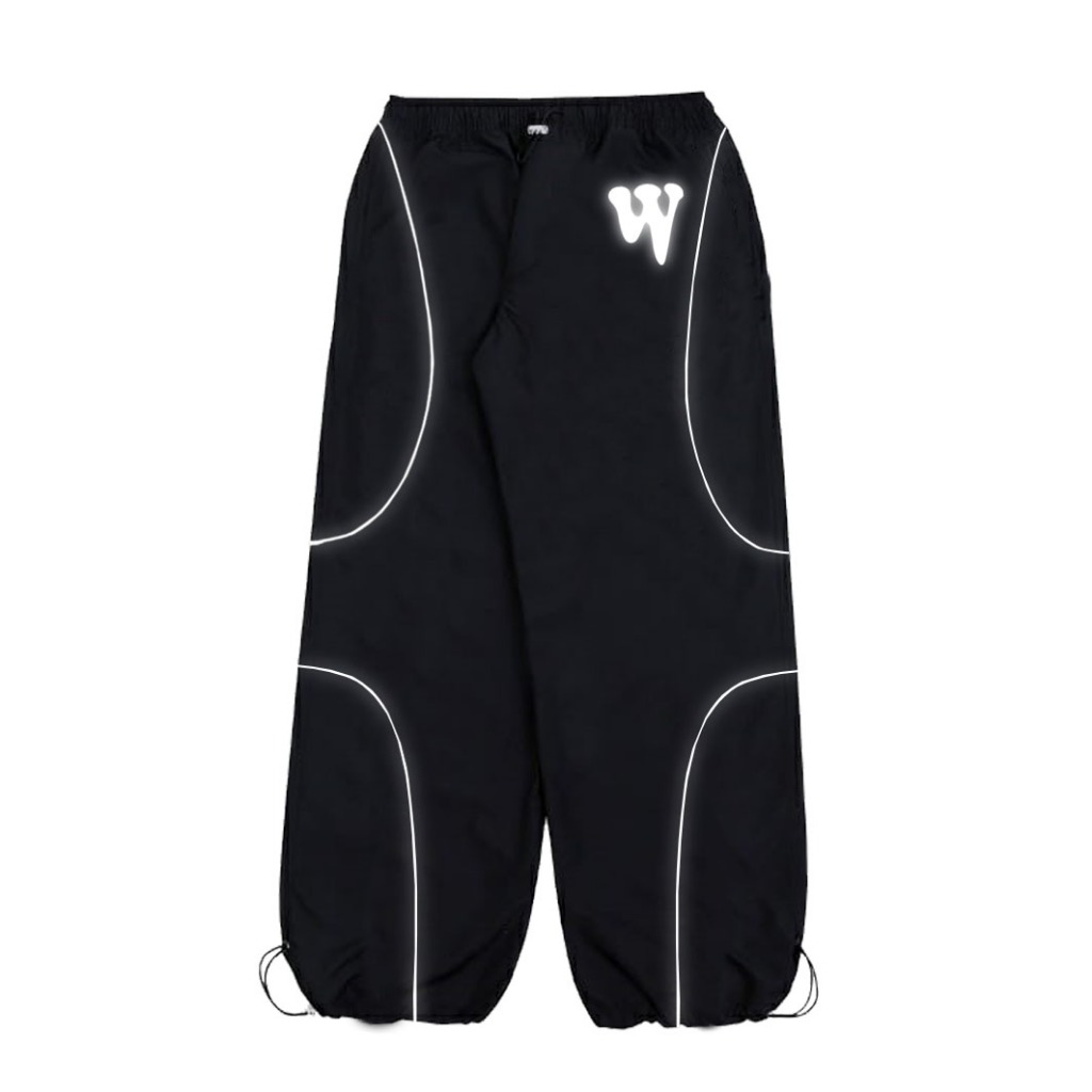 TARCKPANTS BAGGY PANTS List Reflective Striped Wide Leg Parasut Unisex Pria Wanita