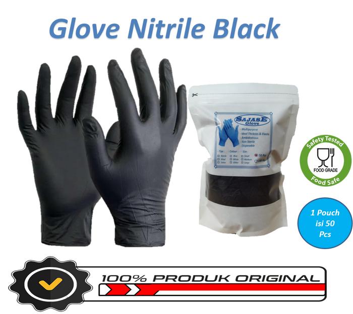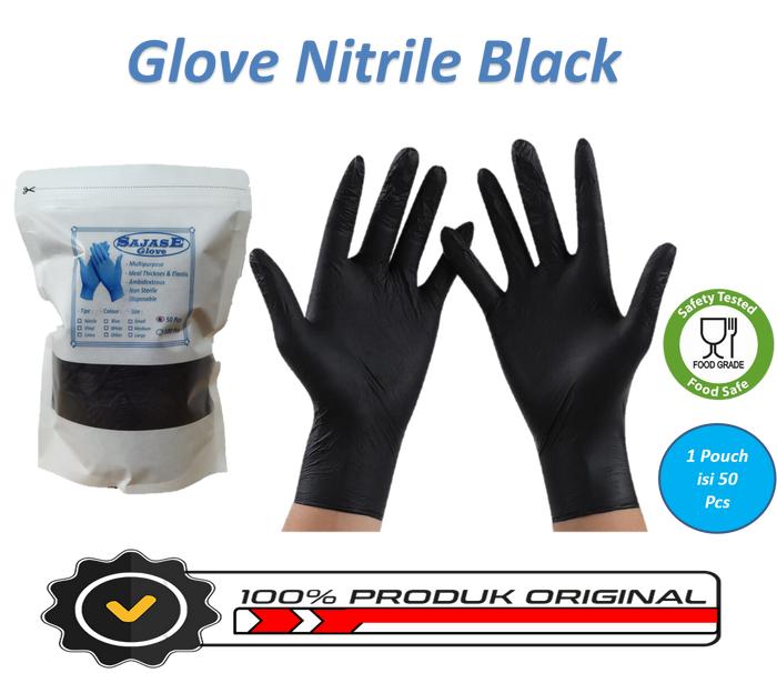 SARUNG TANGAN KARET DETAILING HITAM HAND GLOVE NITRILE HITAM SAJASE FOODGRADE - 1 UCH 100 PCS, M