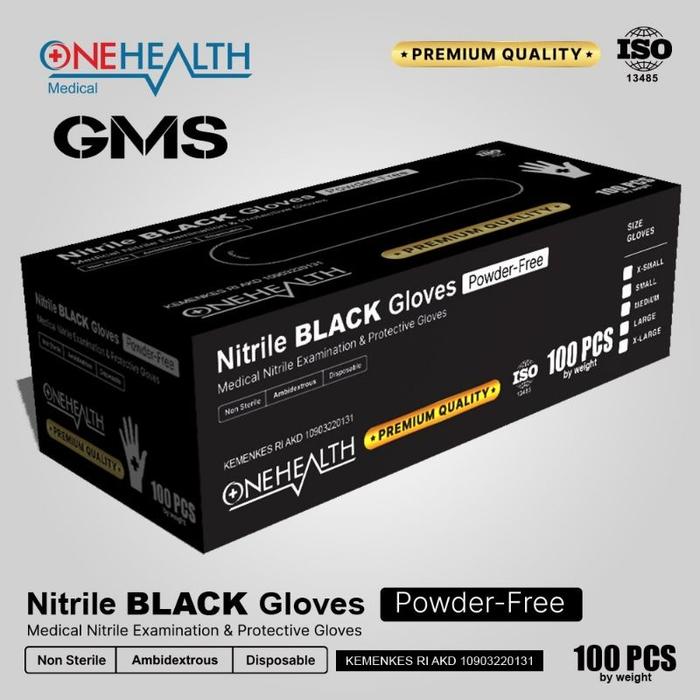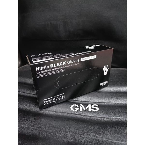SARUNG TANGAN KARET NITRILE BLACK NON WDER ONEHEALTH BOX ISI 100 PCS - M