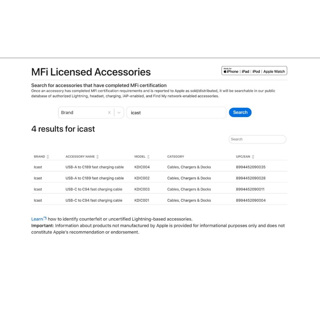Charger iPhone 20W MFi Fast Charging iCast Mini Adaptor 20W USB C To Lightning Bundle Adaptor & Kabel