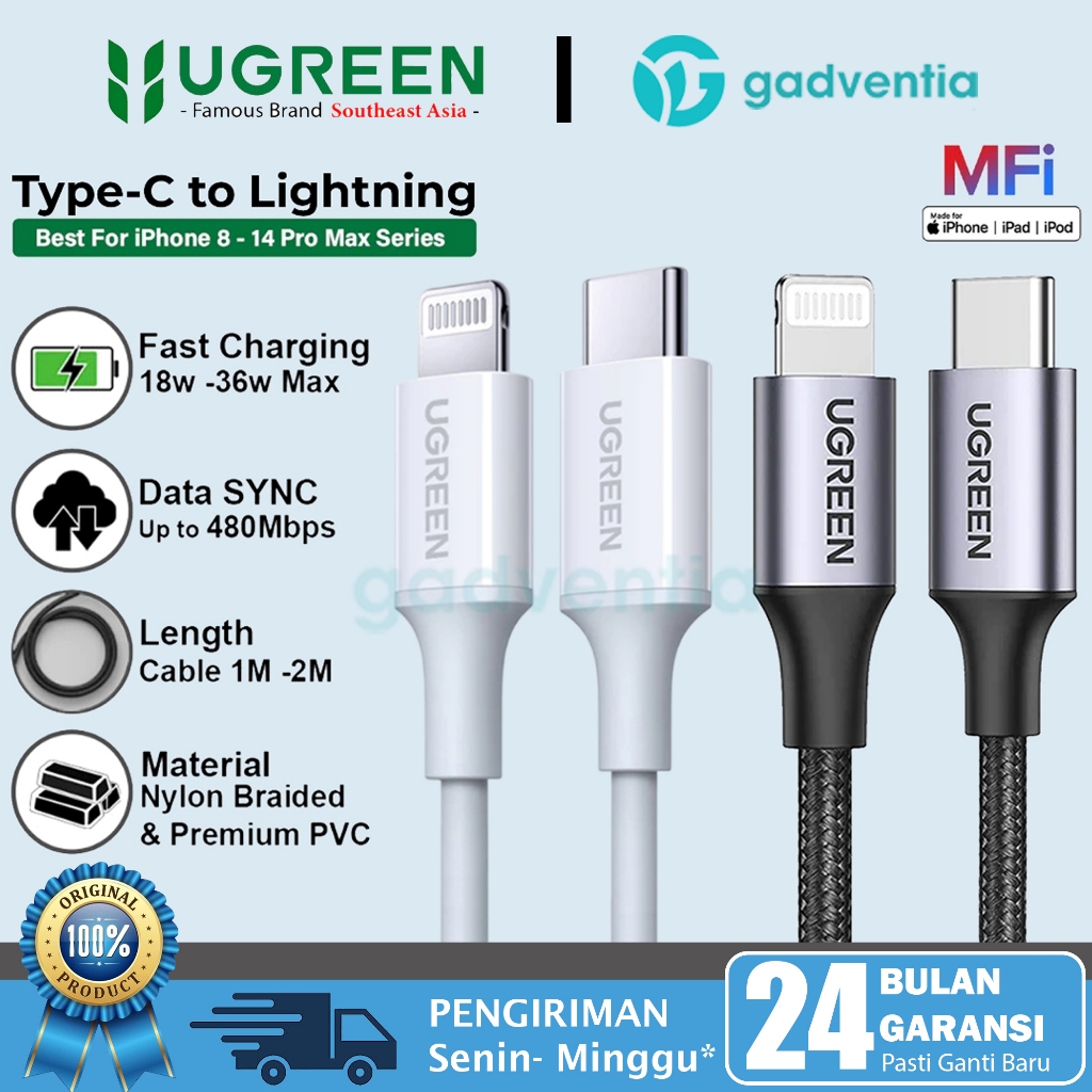 Ugreen Kabel Charger MFI For iPhone 11 12 13 14 Pro Max USB C To Lightning PD Fast Charging 20W-60W