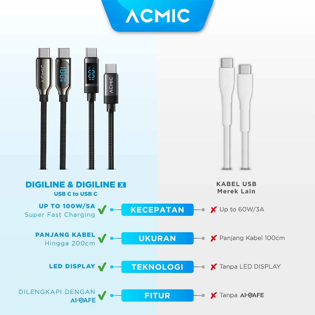 ACMIC DIGILINE Kabel USB-C to USB-C 100W PD Fast Charging LED DISPLAY