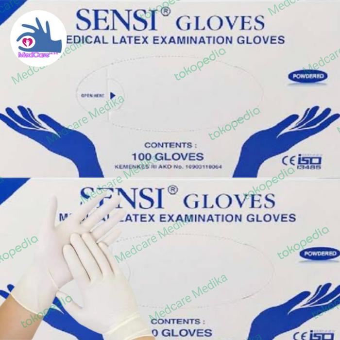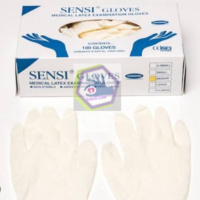 SARUNG TANGAN KARET SENSI LATEX WDERED ISI 100PCS - PUTIH, S
