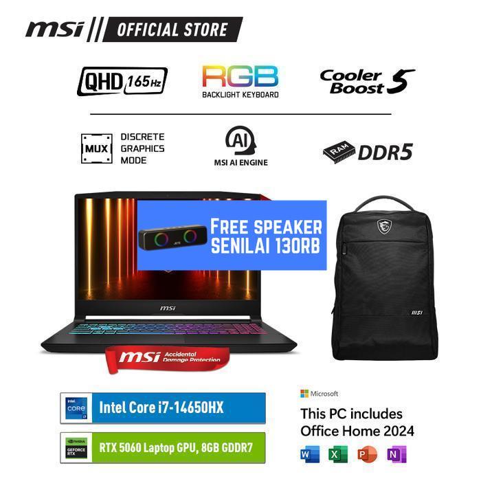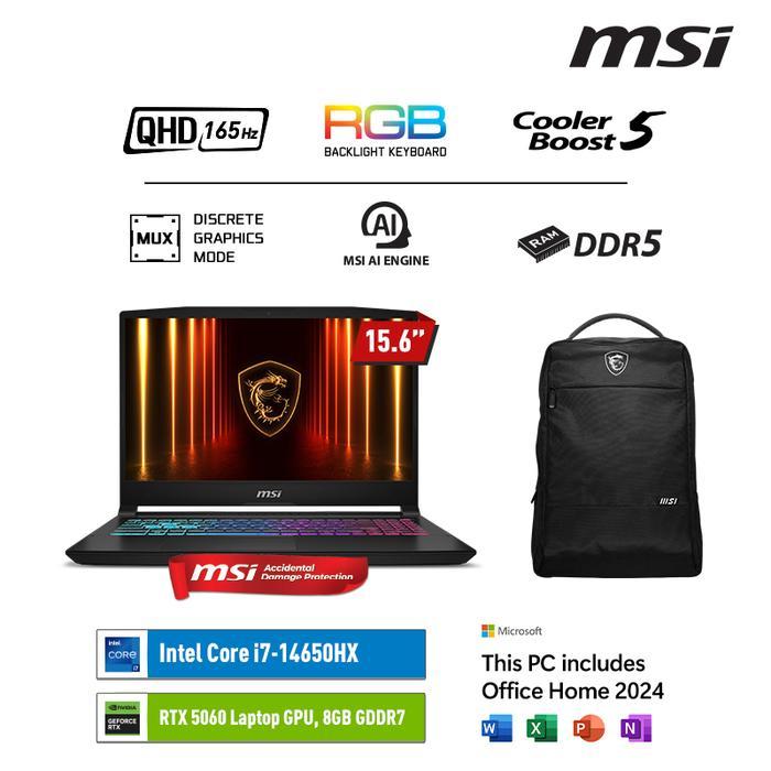MSI KATANA 15 HX I7 14650HX RTX5060 16GB 512GB 15.6QHD 165HZ 100DCIP3 4ZRGB W11 OHS - DDR5 16GB
