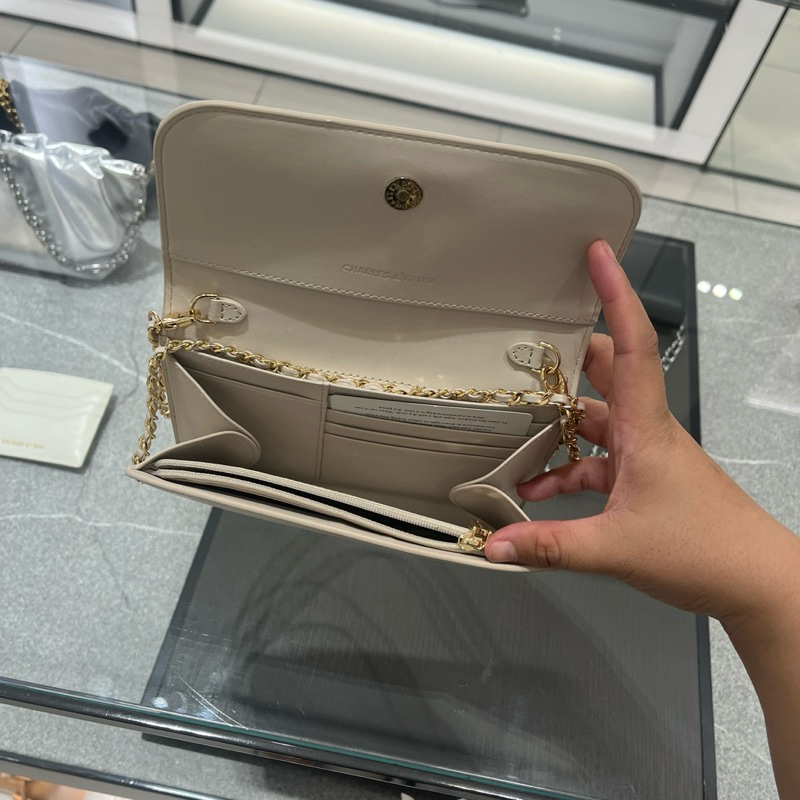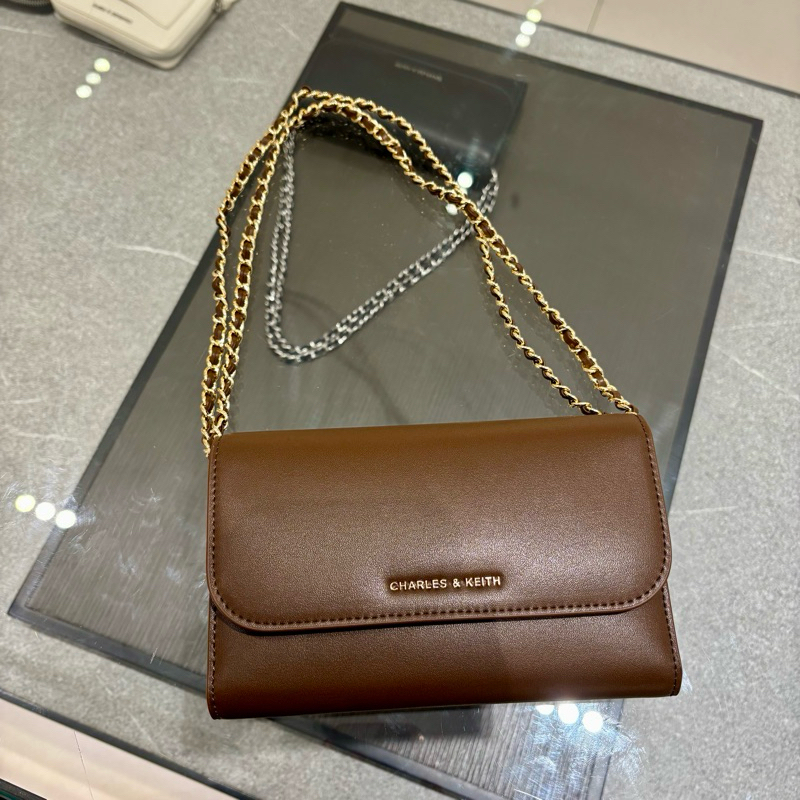 dompet panjang magnetic front flap slingbag/selempang with chain charles&keith new arrival