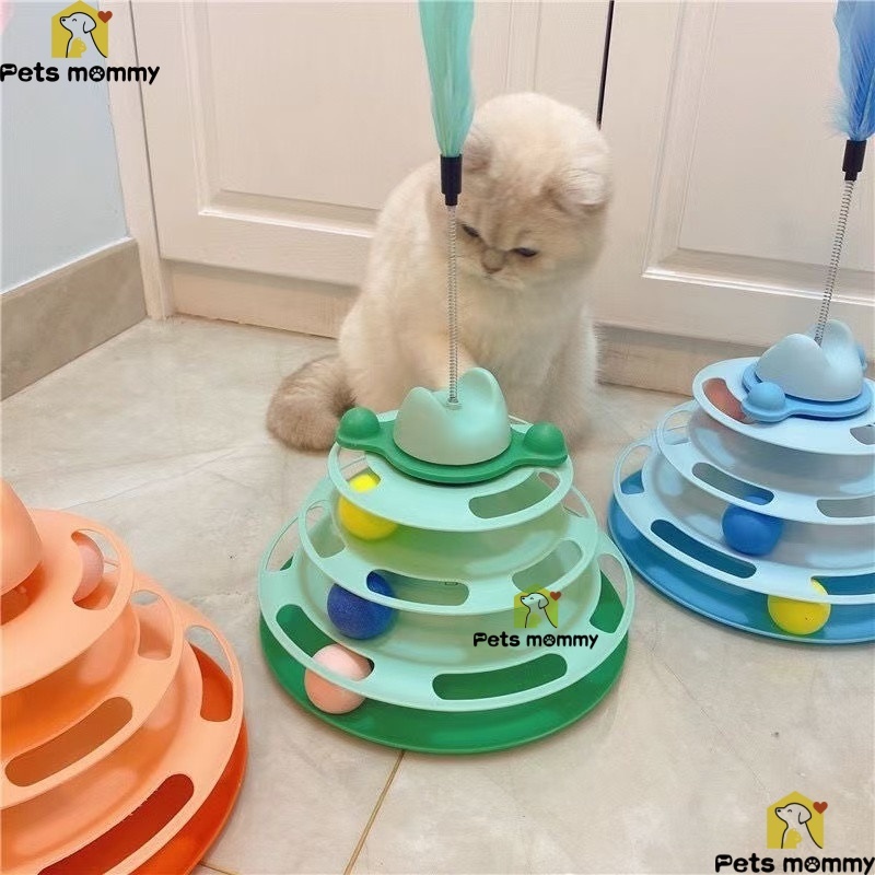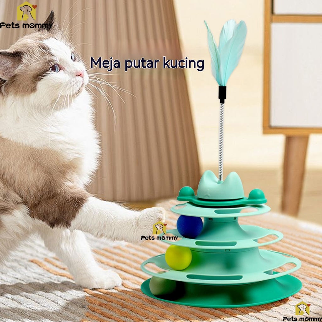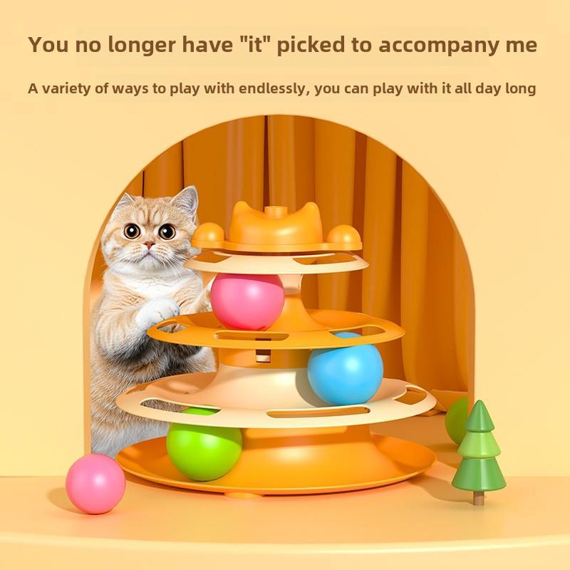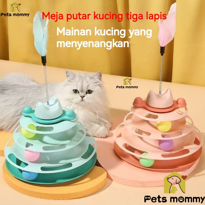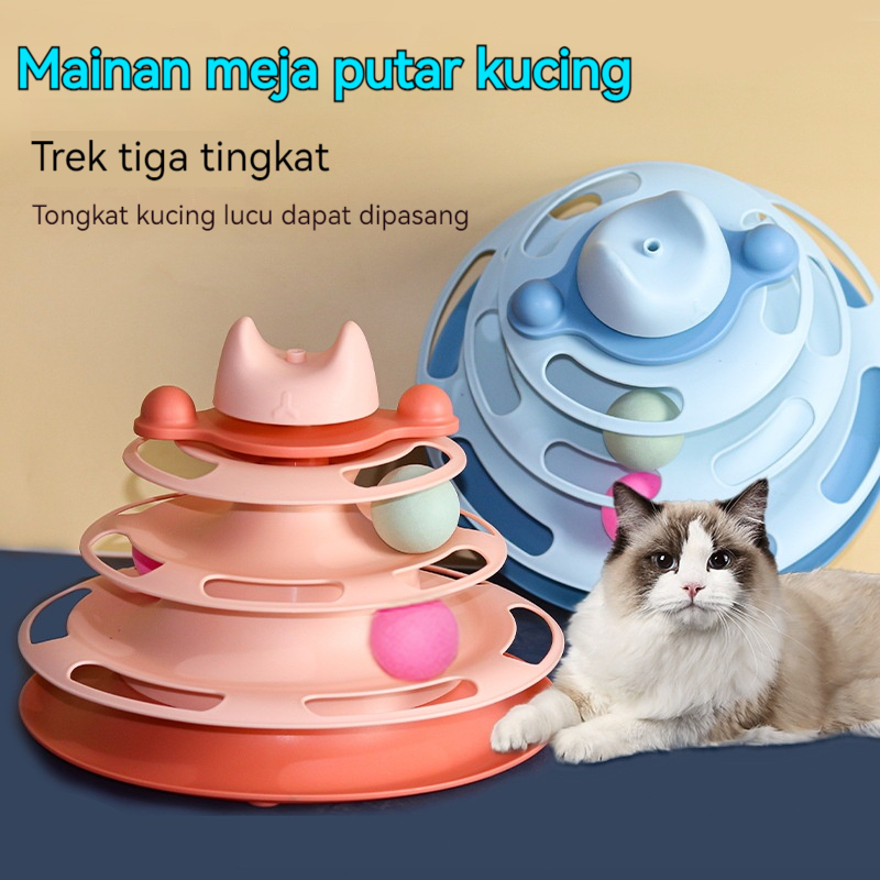 Menara mainan kucing interaktif dengan jalur bola 3 tingkat Set meja putar kucing peliharaan