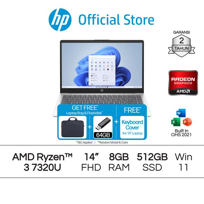 LAPTOP HP AMD RYZEN 3 RADEON 8GB RAM 256GB 512GB SSD SILVER WINDOWS 11 HOME 14 INCH GARANSI 2 TAHUN OFFICIAL - 8GB512GB CO-PILOT,
