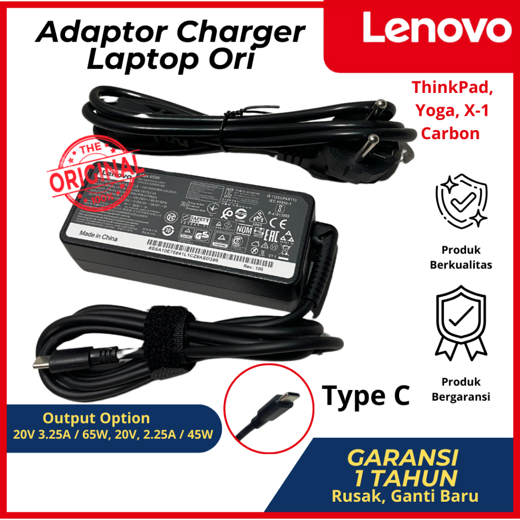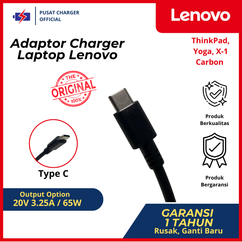 [GARANSI 1 TAHUN] Charger Adaptor Lnvo Type C Original Thinkpad Yoga X1 Carbon 65W Adapter