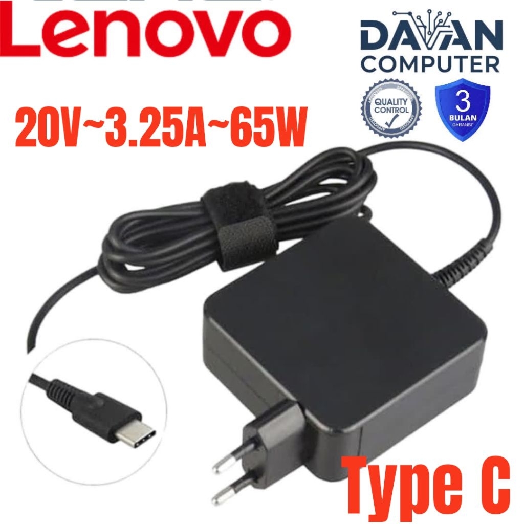 Adaptor Charger Lenovo 65W 3.25a USB Type C Original ThinkPad T480 Yoga 370 Ori Square