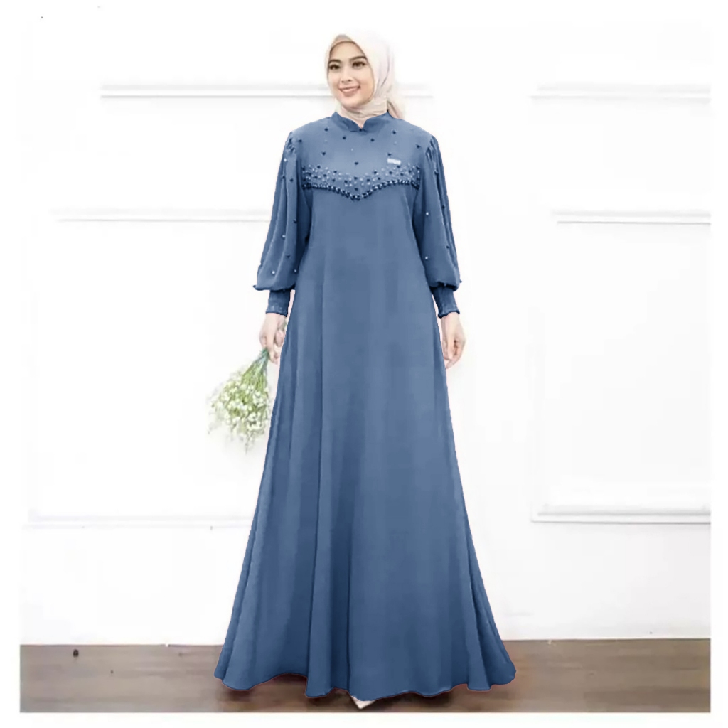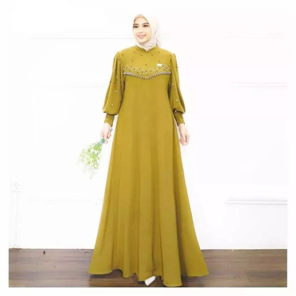 Vioni Dress / Gamis Crinkle Premium / Gamis Lebaran / Dress Payet Mutiara / Dress Formal Casual
