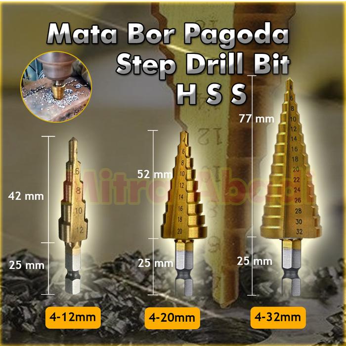 MATA BOR PAGODA STEP DRILL BIT HSS HEX SHANK STEP CONE PYRAMID - 4-12 MM