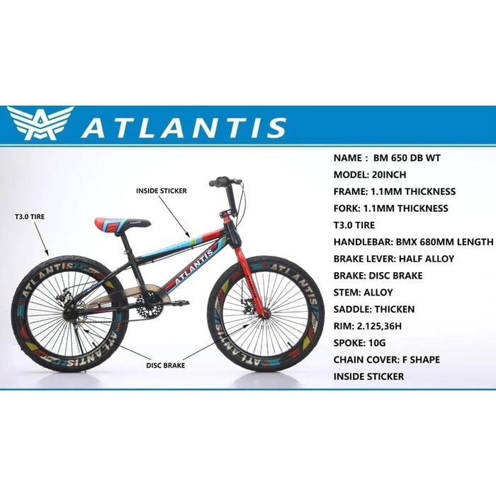 [ SALE ] Sepeda BMX Anak Laki - Laki usia 9 sampai 14 Tahun ATLANTIS size 20 inch - Rem DiscBrake - V Brake - Ban Jumbo - BONUS JALU