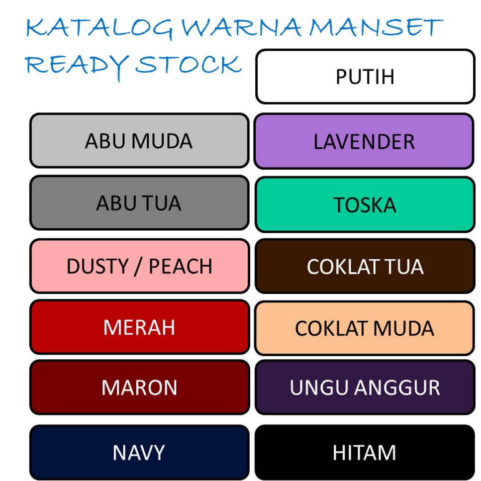 PILIH WARNA>>DICHAT, Putih, Lavender, UNGU TERONG, Hijau Tua, Merah, ABU MUDA, Abu Tua, COKLAT MUDA/KULIT, Cokelat Tua