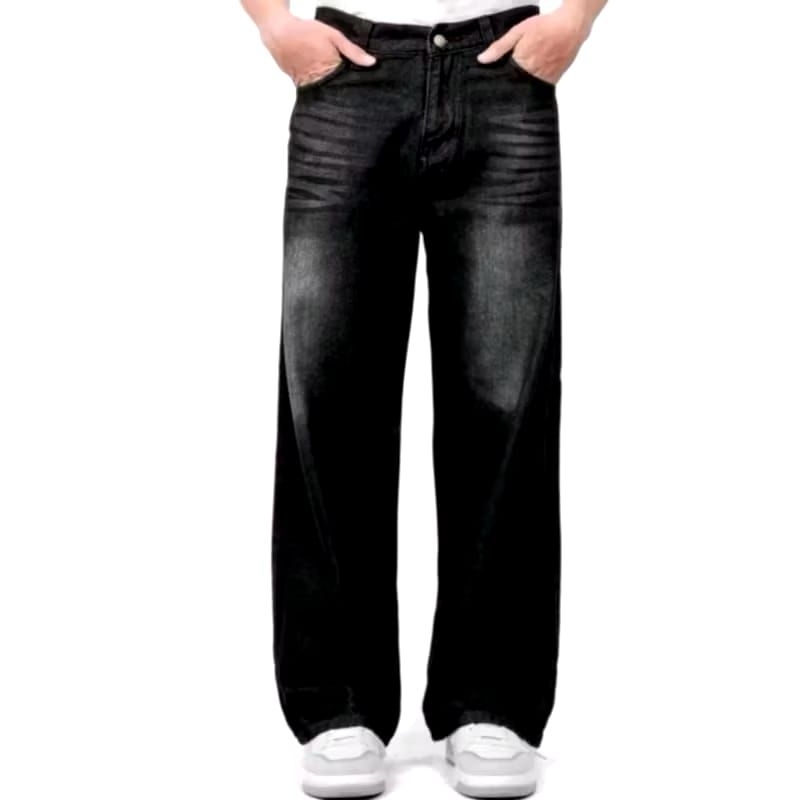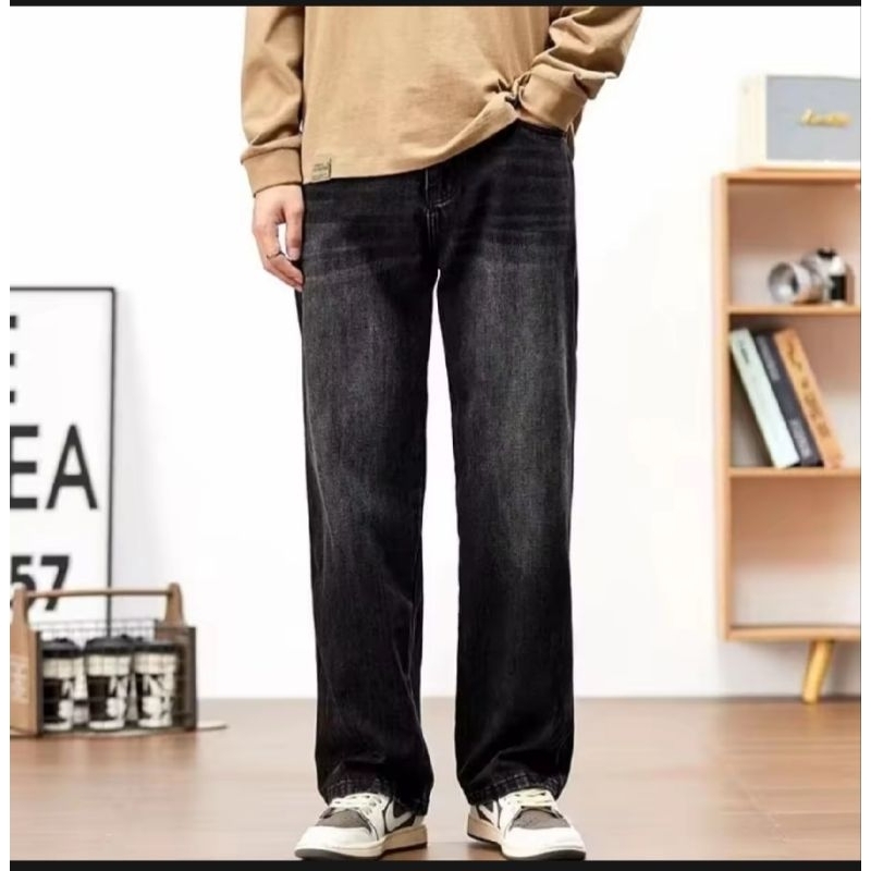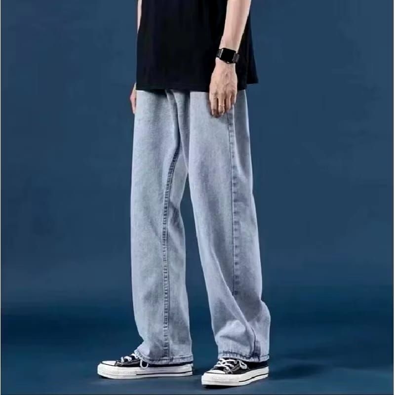 Celana jeans pria baggy pants korean style oversizeloose blue jeans straight kulot boyfriend jeans longg..