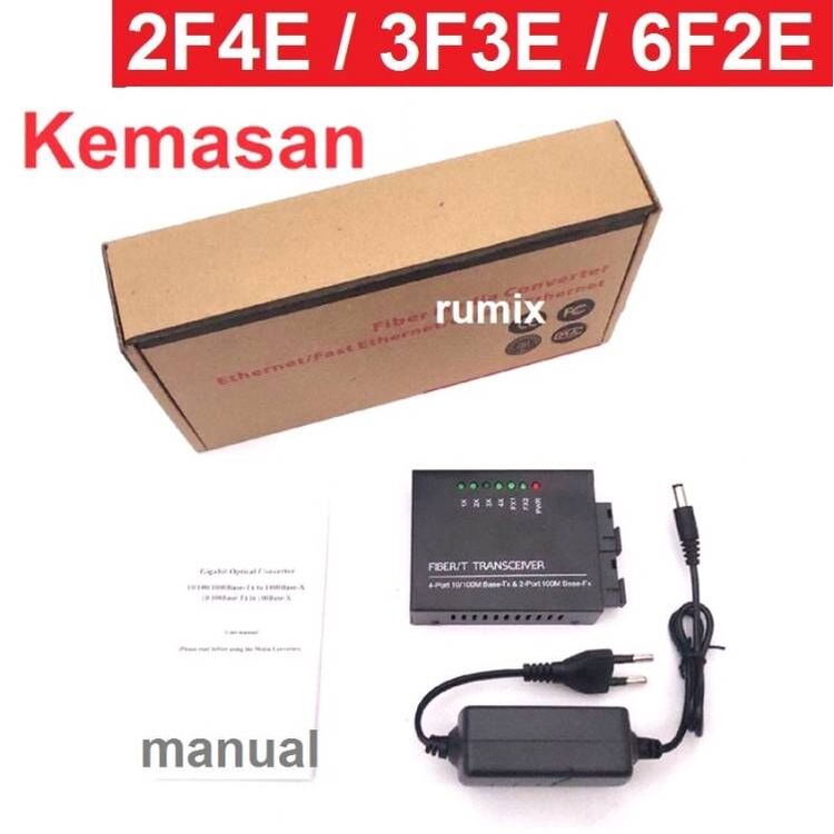 Media Converter 6 Port FO 2 Port LAN Fiber Switch Optic 6 SC 2 RJ45 Optical Dengan EU Adapter