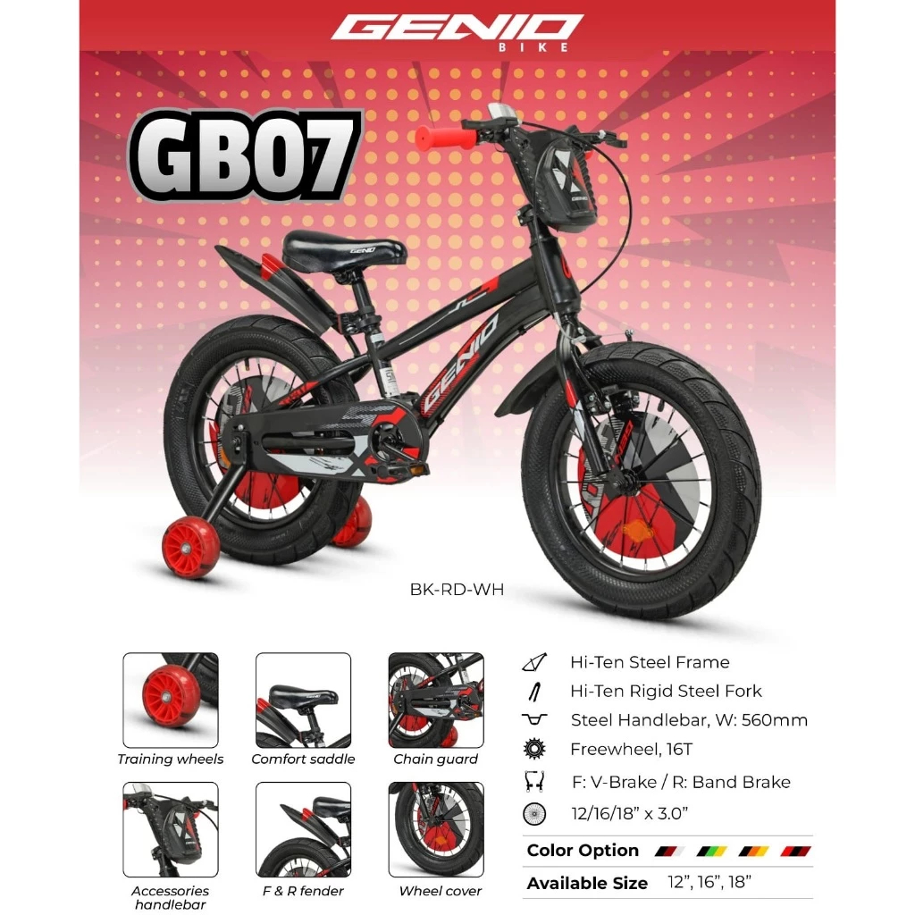 Sepeda Anak Laki BMX GENIO GB07 GB 07 Ukuran 12 16 18 20 Inch By United
