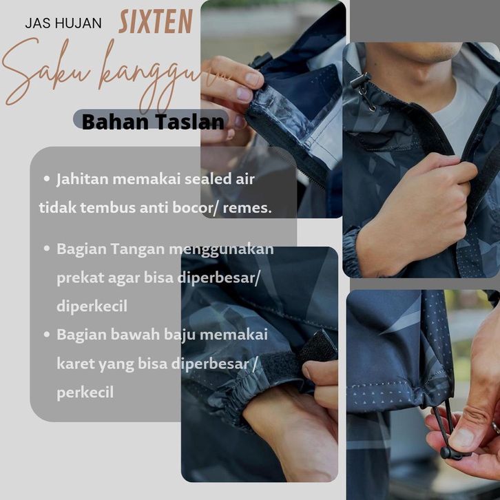 Promo Jas Hujan SIXTEN Jas Hujan Pria Wanita Dewasa Bahan Taslan Saku Kangguru Keren