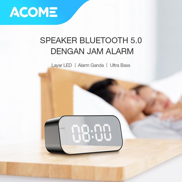 BISA Acome Speaker Bluetooth 5.0 Jam Alarm LED Display Ultra Bass A5 Black/Blue + Micro SD 32 GB