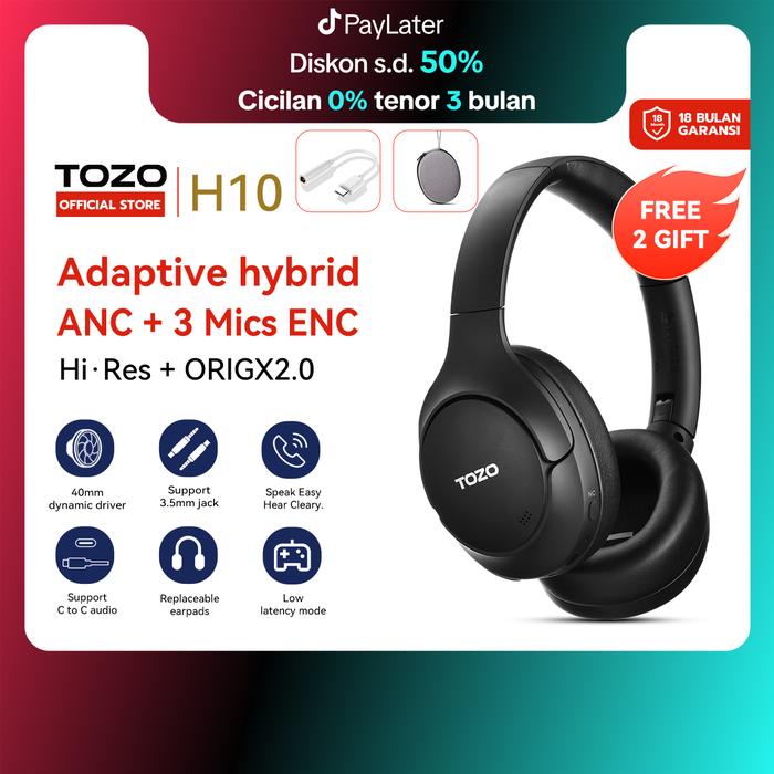 (NEW LAUNCH) Tozo H10 Hybrid Active Noise Cancelling Headphones ANC + ENC 3 Mics Clear Calls