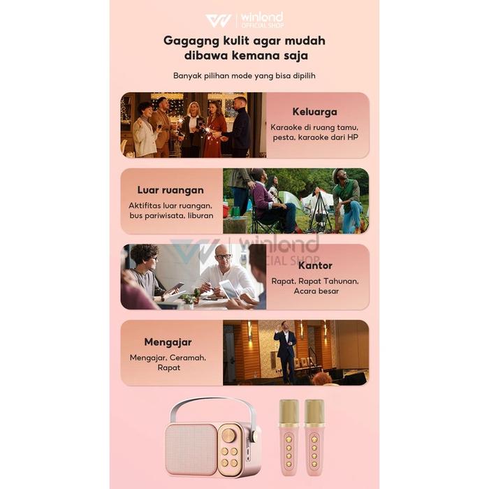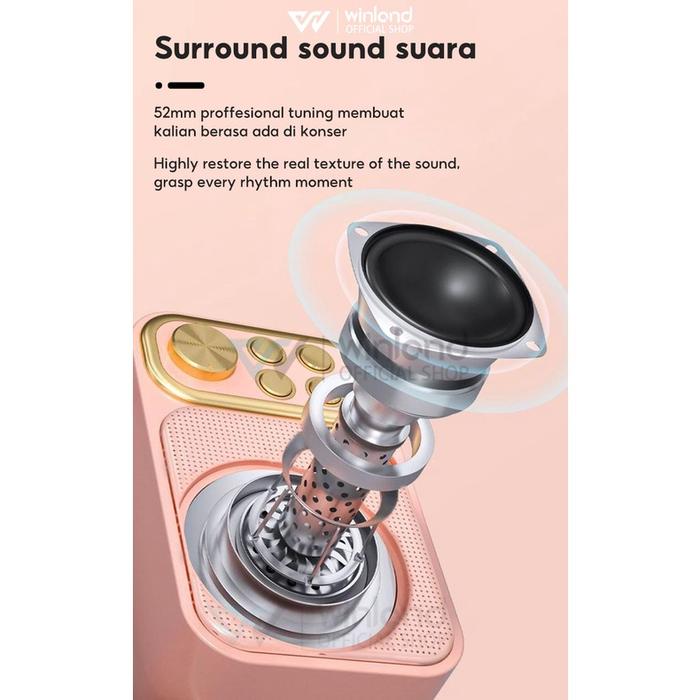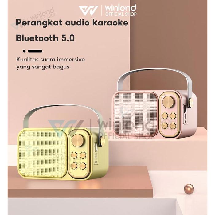 Winland Karaoke Speaker set ktv Cute Wireless 2 mic Nirkabel Portabel Speaker Bluetooth Akustik