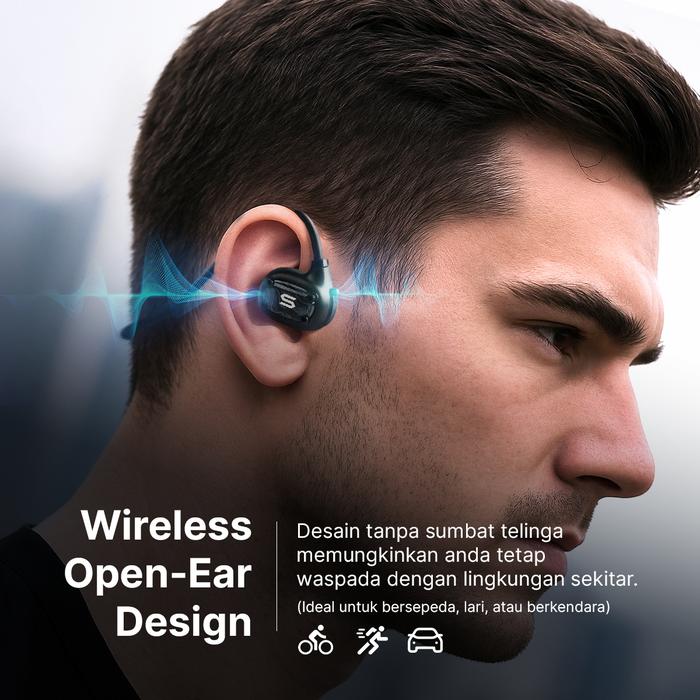 SOUL Open Ear 2 Air Conduction Earphone IPX4 Lightweight Sport Headset Bluetooth Anti Keringat Blue