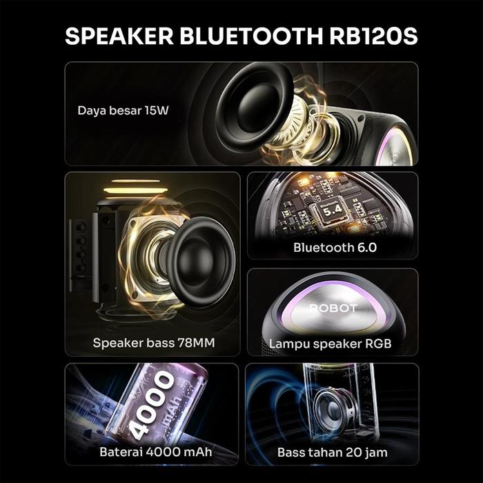 ROBOT Speaker Wireless Portable Bluetooth 6.0 IPX7 Waterproof 15Watts UltraBass RGB with 20 Hours