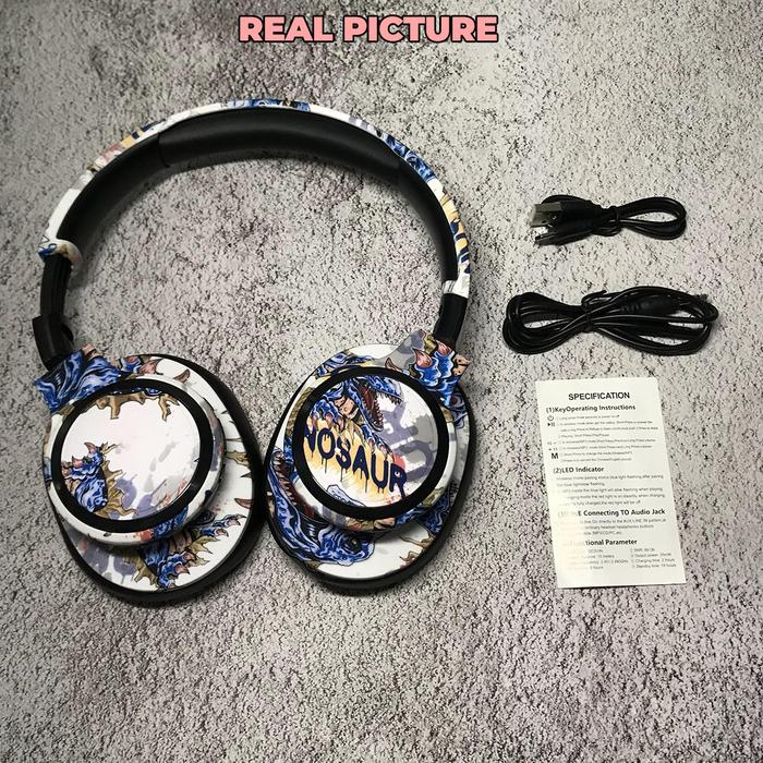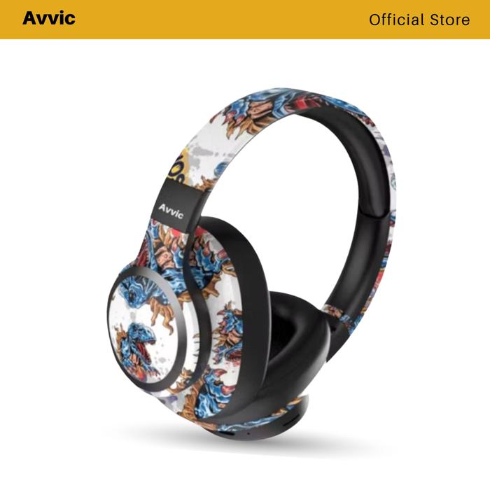Avvic P29 Headphone Bluetooth Wireless Headset Full Print Dino Hifi Stereo Powerful Bass HD Sound