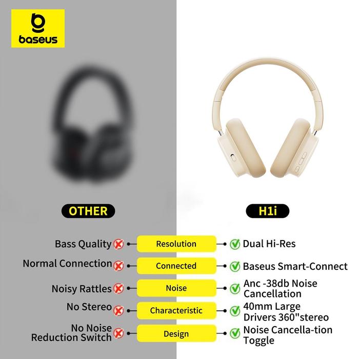 [SALE] Baseus Bowie H1i Bluetooth ANC Headphone Noise-Cancellation Wireless/Wired Headphone ANC