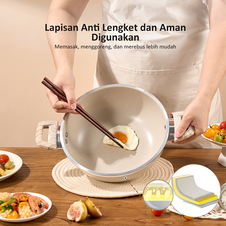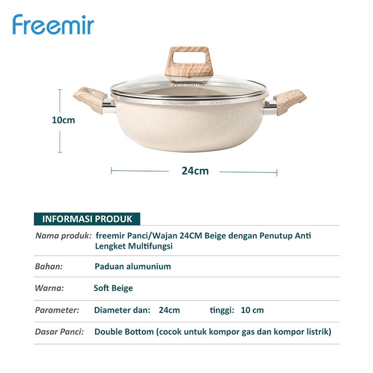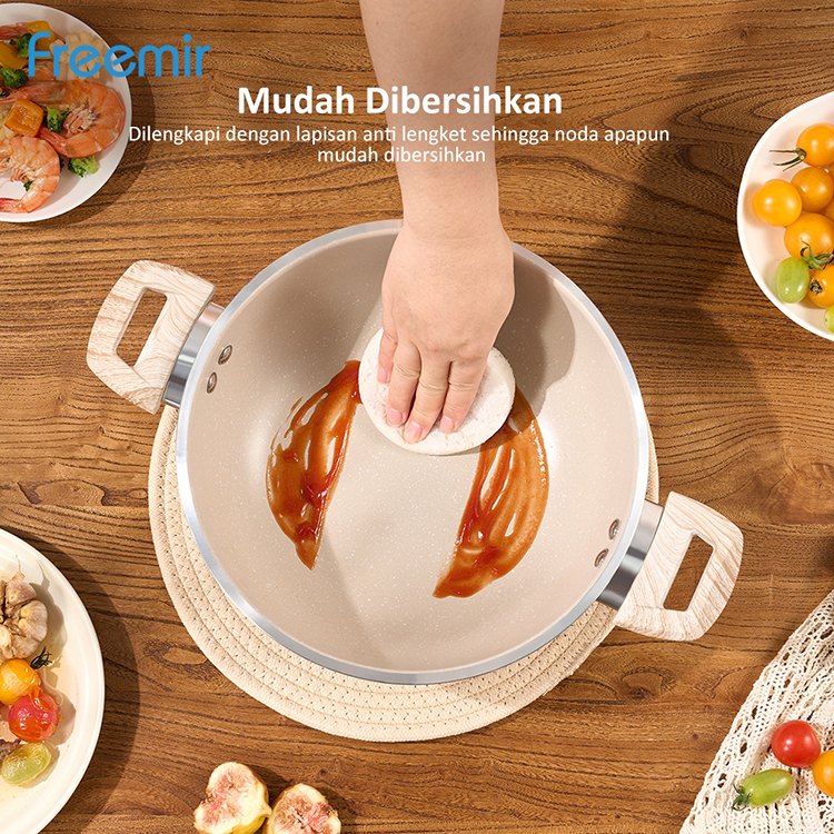 freemir Wajan Panci Tatakan 24 10cm Double Bottom Granit Anti Lengket Serbaguna