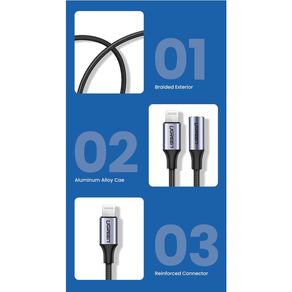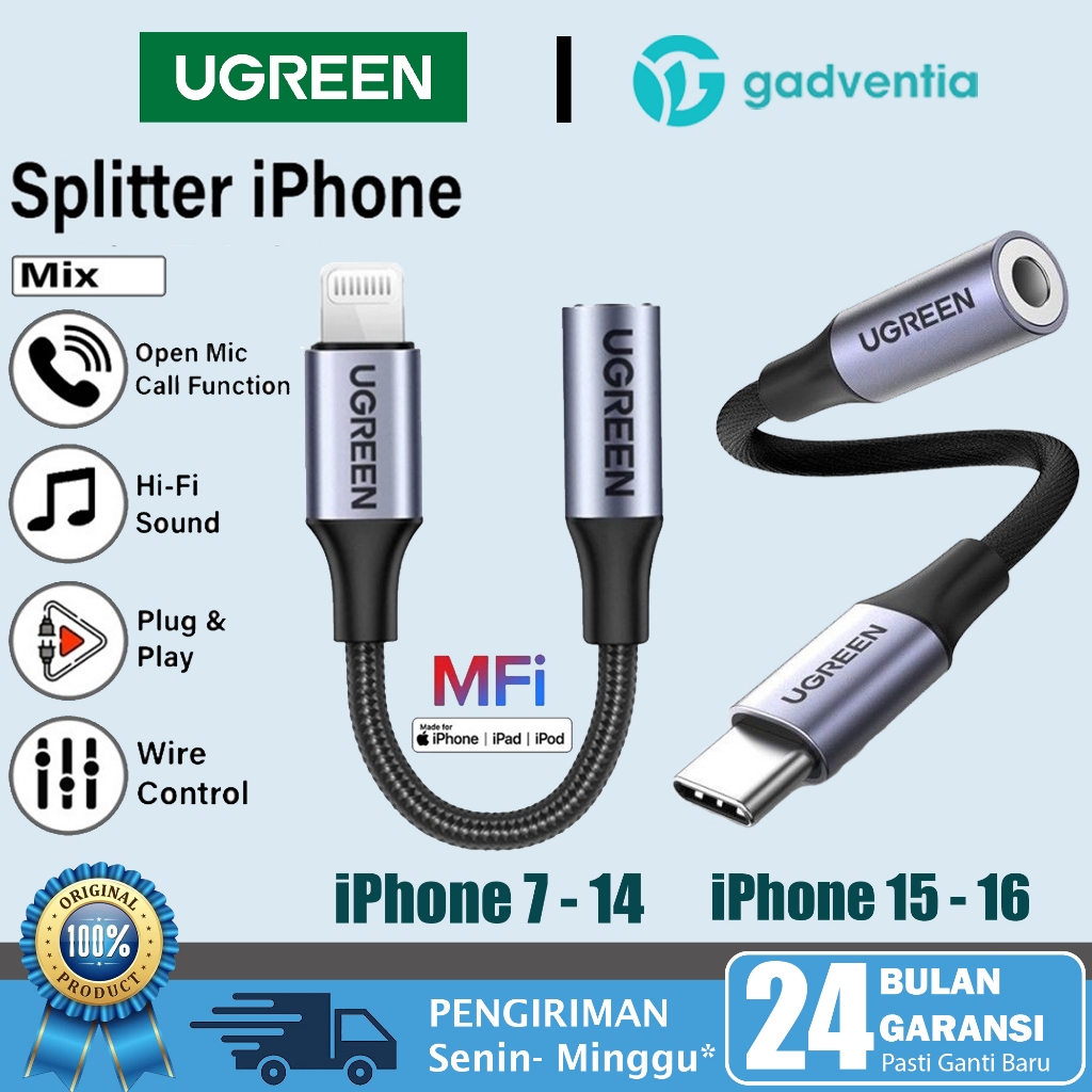 UGREEN Splitter Converter Untuk Iphone MFI 11 12 13 14 Pro Max Lightning To Jack 3.5mm / iPhone 15 16 Audio Type C Adapt