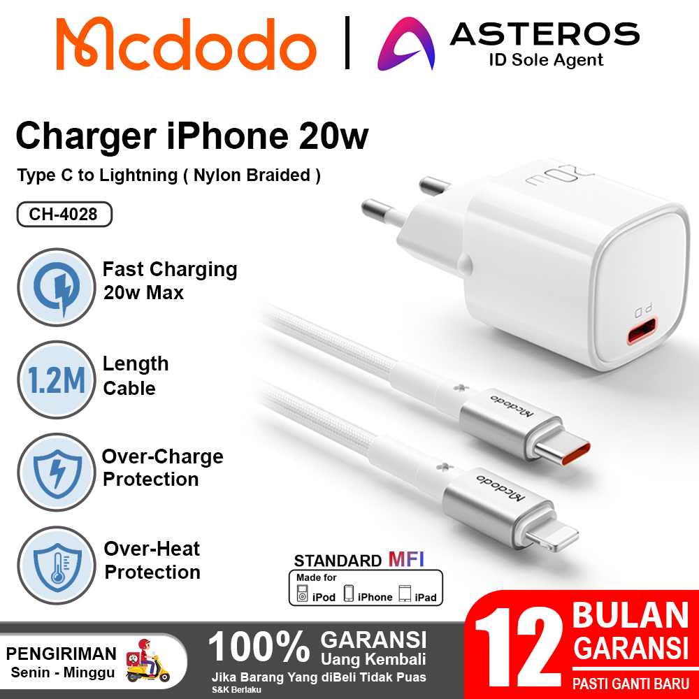 MCDODO Charger For iPhone X Xr Xs 11 12 13 14 Pro Max PD Type C To Lightning FAST Charging 18w 20w 30w