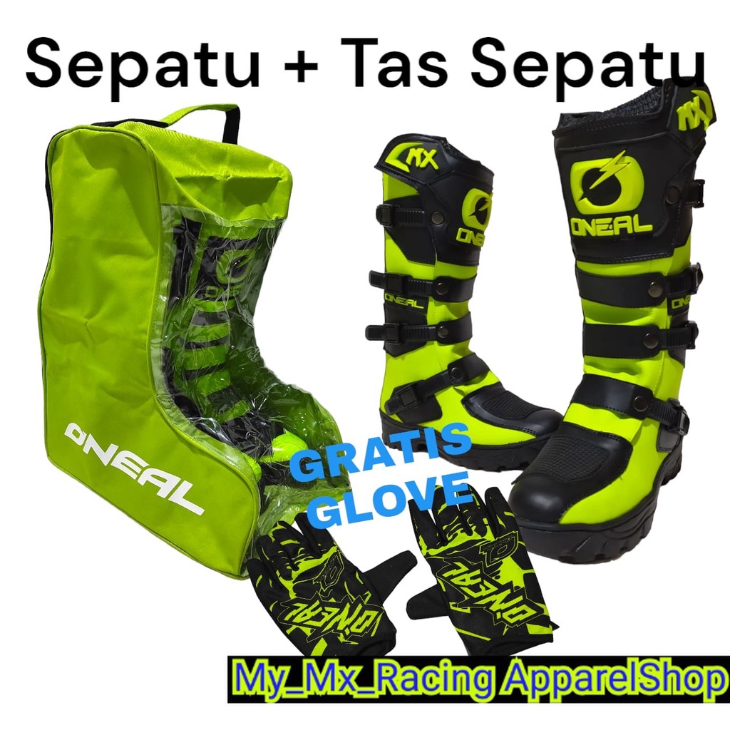 sepatu trail cross plus tas buat sepatu bonus sarung tangan satu set sepatu trabas or adventure dan tas satu set cocok dan keren sepatu gunung FLOU BEST SELLER