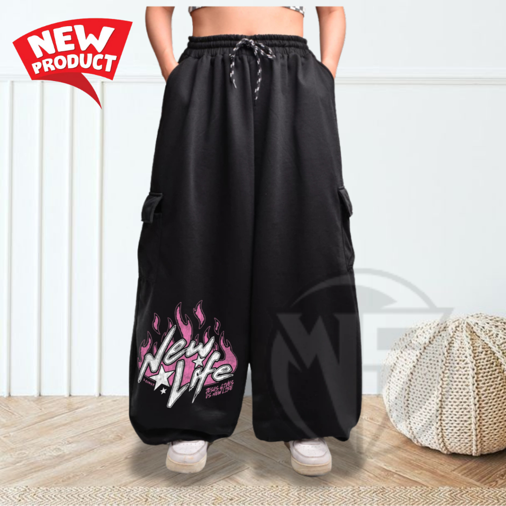Celana Baggy Loose Fit Gombrong Bahan Katun Fleece Warna Black / Celana Baggy Jeans
