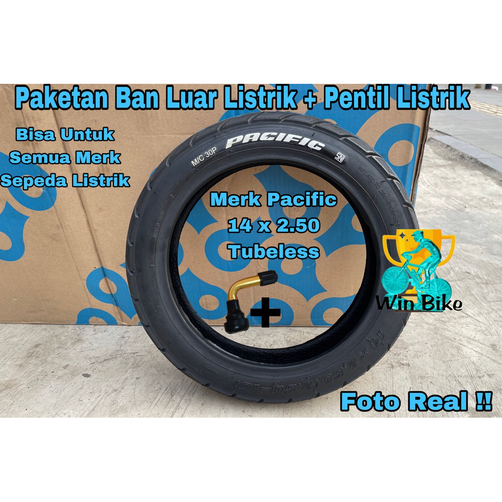 PACIFIC Ban Luar Sepeda Listrik 14 x 2.50 Atau 100/60-10 Paketan Pentil Ban Luar Listrik Pacific Tubeless New Free Packi