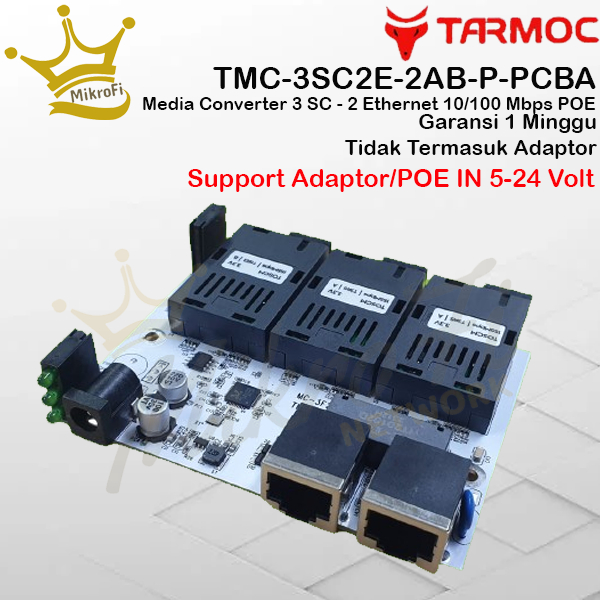Tarmoc TMC-3SC2E-2AB-P-PCBA | Media Converter Switch 3FO 2LAN / 3 FO 2 LAN 10/100Mbps POE IN 5-24 Volt | 3SC 2LAN / 3 SC