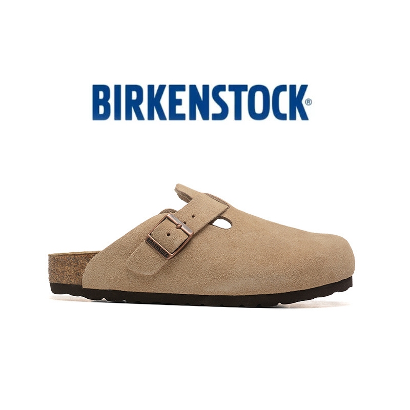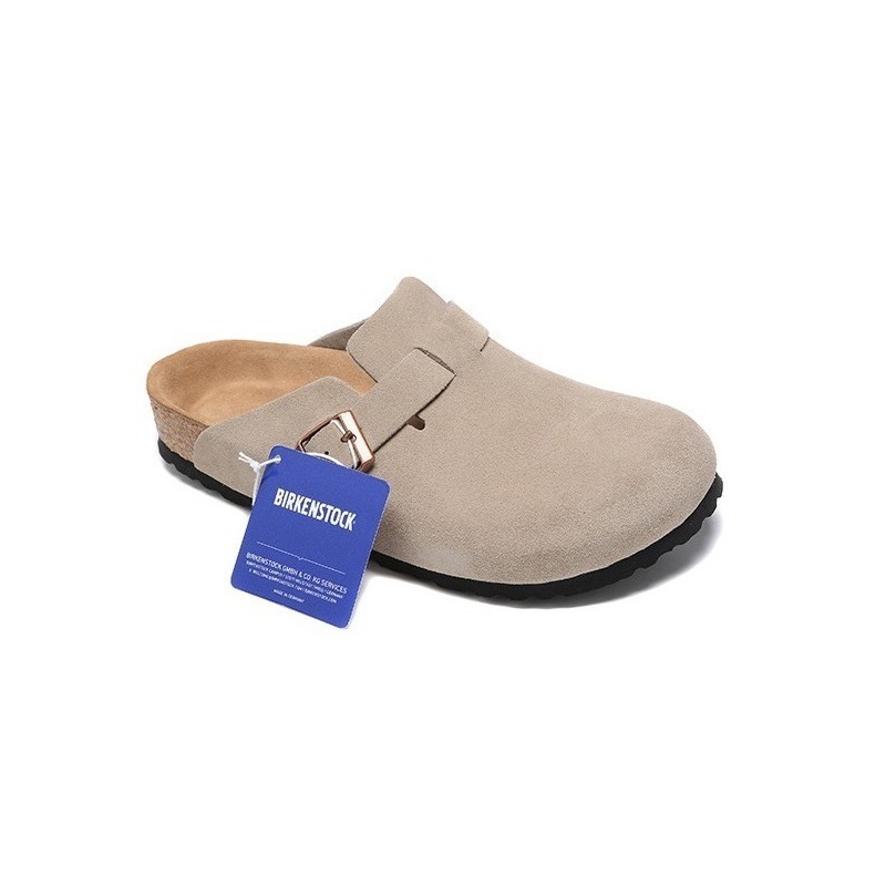 Birkenstock Boston Taupe Original Sandal Slop Suede Leather Soft Footbed Clogs Pria/Wanita Slippers