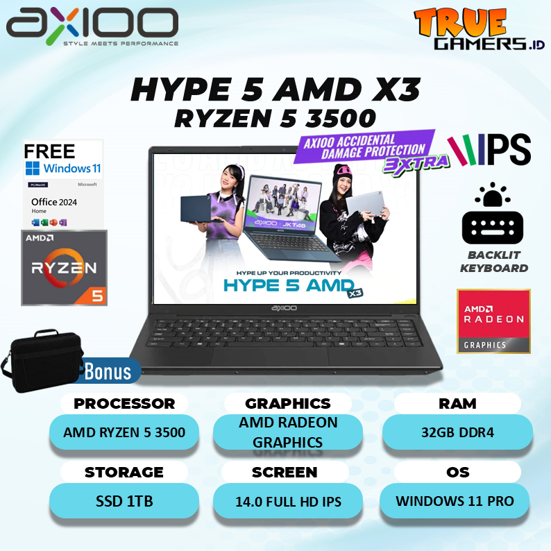 Laptop Axioo Hype 5 X3 AMD Ryzen 5 3500 32GB 1TB 14 Inch FHD IPS