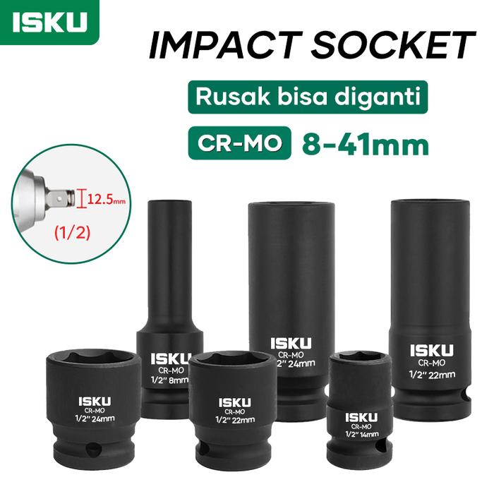 ISKU PANJANG MATA IMPACT SOCKET 12 KUNCI MATA SOK PUKUL 8MM 46 MM - 39MM