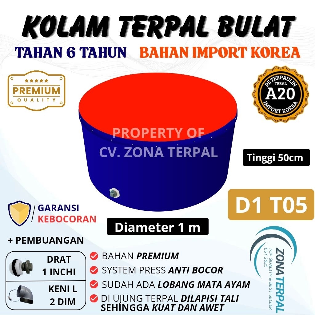 Kolam Terpal Bundar Kolam Terpal ikan Bulat A20 D1 T05 - Diameter 1 meter Tinggi 50centimeter - D1 T50 Kolam terpal bund