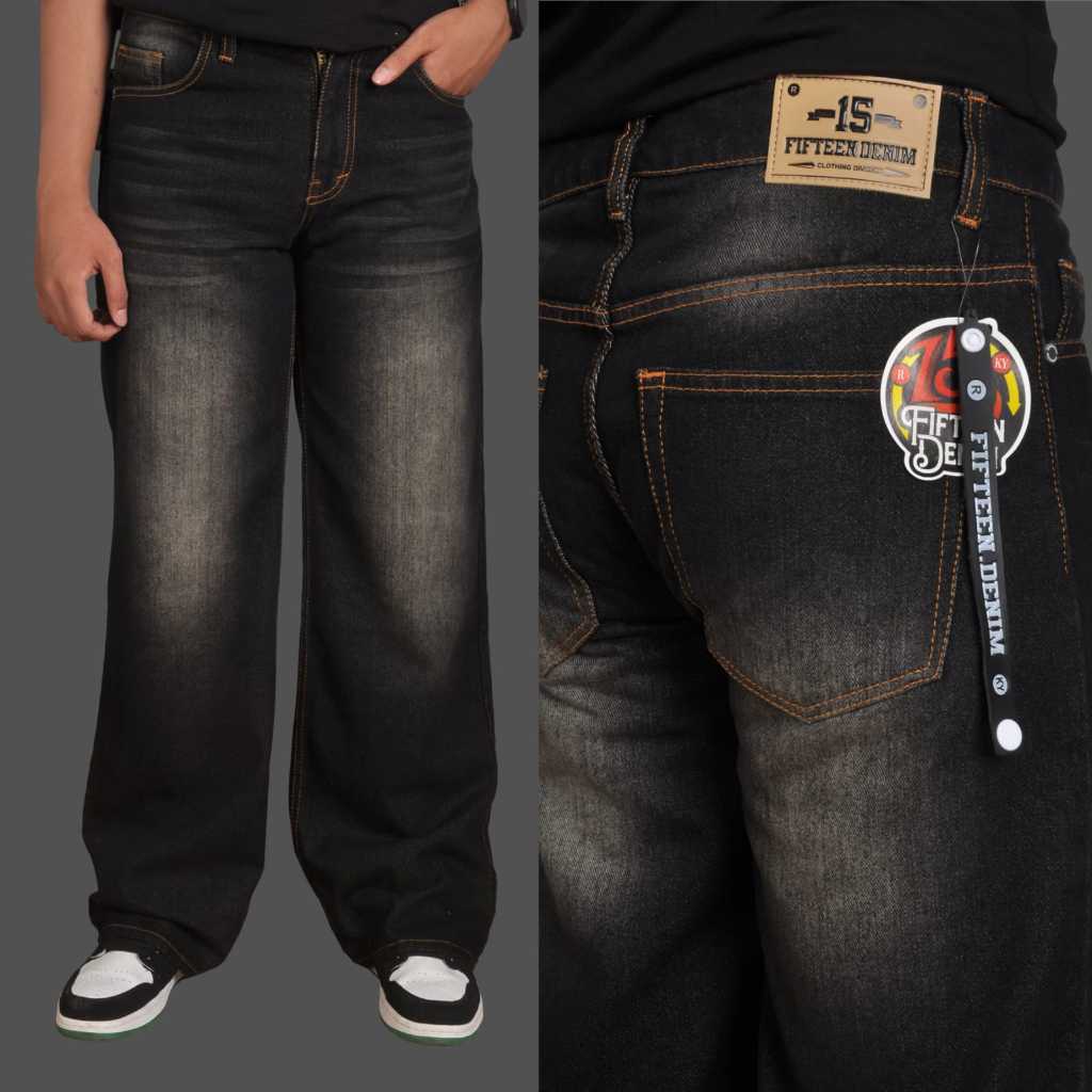 Celana Jeans Panjang Pria Baggy Wide Leg Gombrong Black Jazzss BP Retro Wisker Oversize Skena Unisex Denim Non Stretch