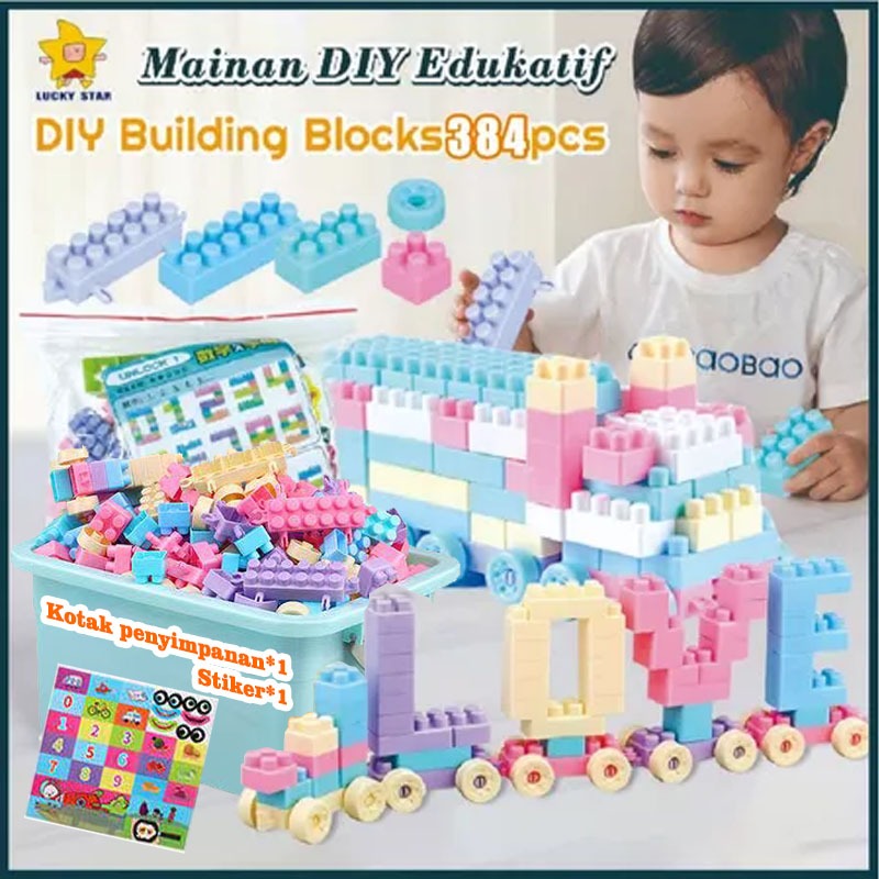 DIY Building Blocks 384PCS Balok Susun Bongkar Pasang Mainan Edukasi Anak Block Toys