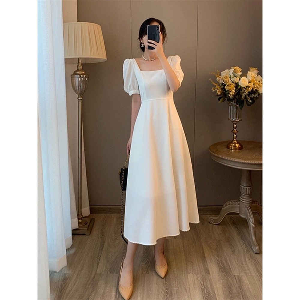 MISS EMITA Baju White Midi Dress Elegan Party Dress Putih Wanita Gaun Putih Korean Style Pantai Tanpa Lengan Dress Simpl