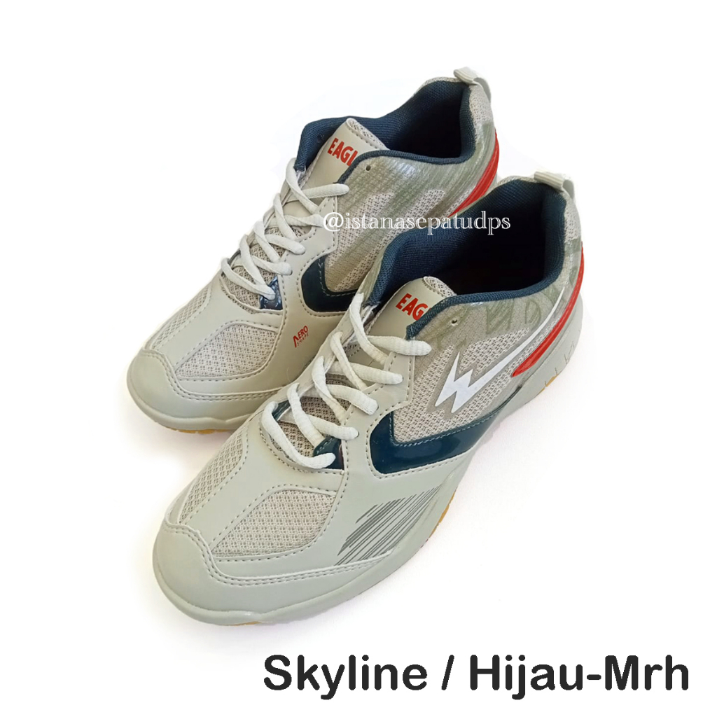 Sepatu Sport Badminton Eagle Skyline, Biru & Hijau/Cream, Size 38-44, Nyaman & Berkualitas