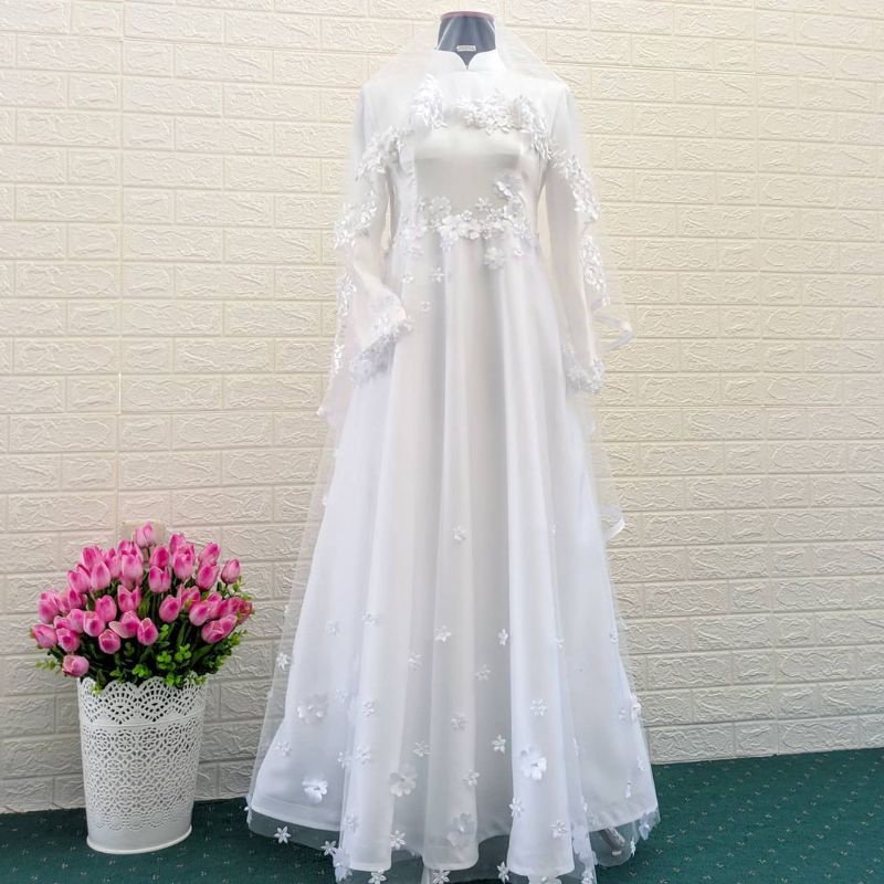 Gaun akad/Gaun walimah syari/Gaun Pengantin syari/Gamis walimah/Gamispengantin/Gaun pengantin murah