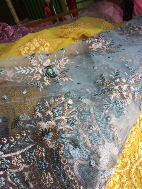 Kain Tulle 3D Ceplok Bordir/Kain Kebaya/Gaun Pengantin