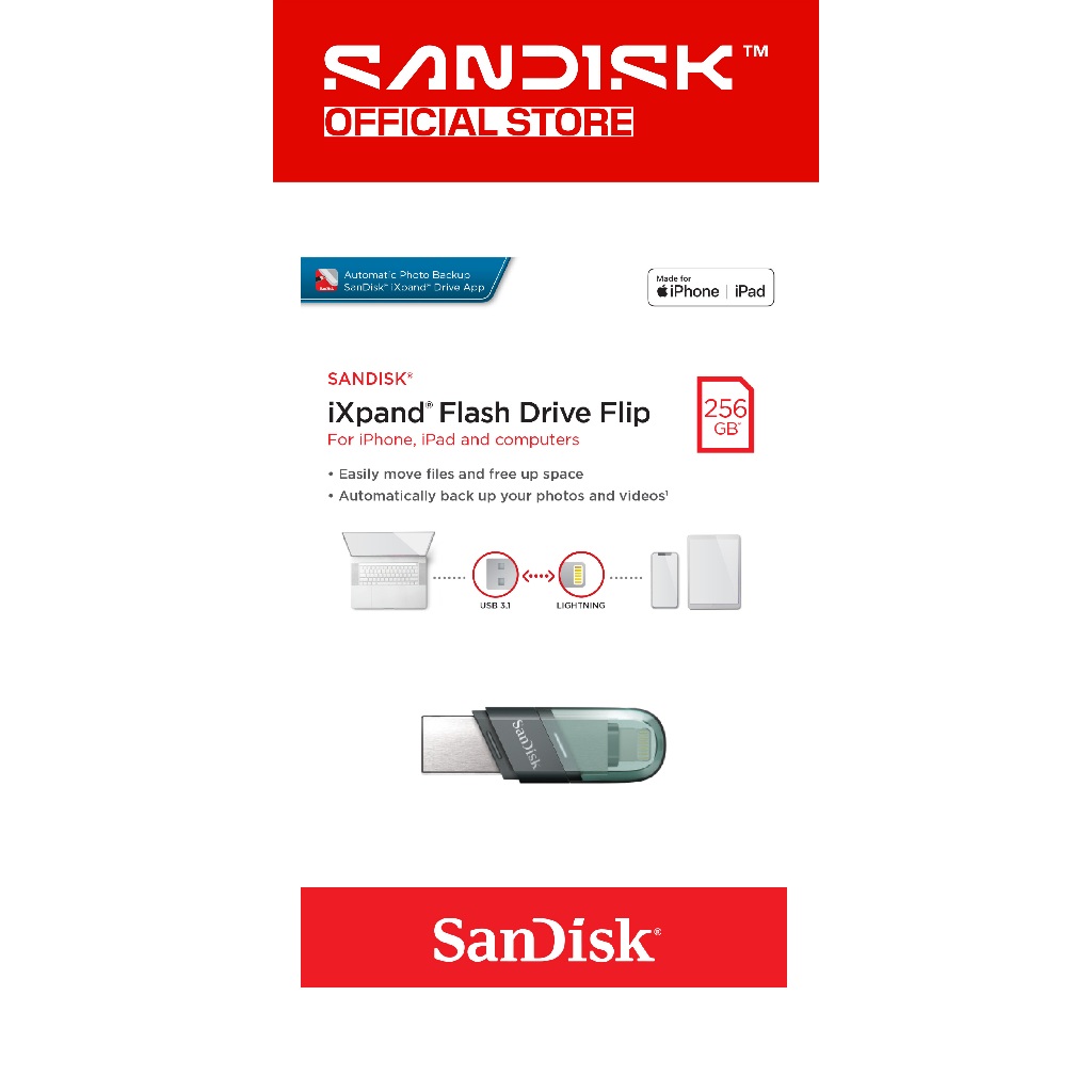 SANDISK iXpand Flip 64GB / 128GB / 256GB Flash Drive OTG Lightning USB 3.1 for iPhone iPad