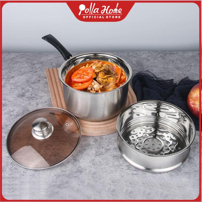 Ollahom Panci Mie Panci Sup SUS 304 Tebal Dengan Tutup Kaca Kitchenware Dapur