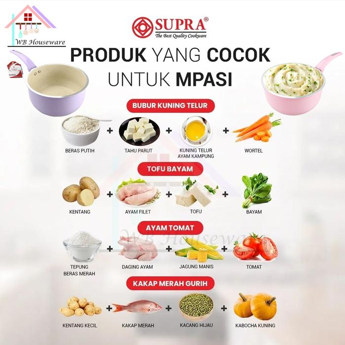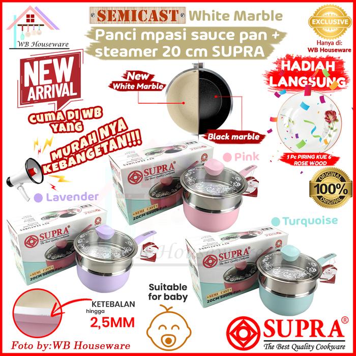 SUPRA panci mpasi bayi + steamer serbaguna / sauce pan 20cm seri pastel white marble anti lengket /