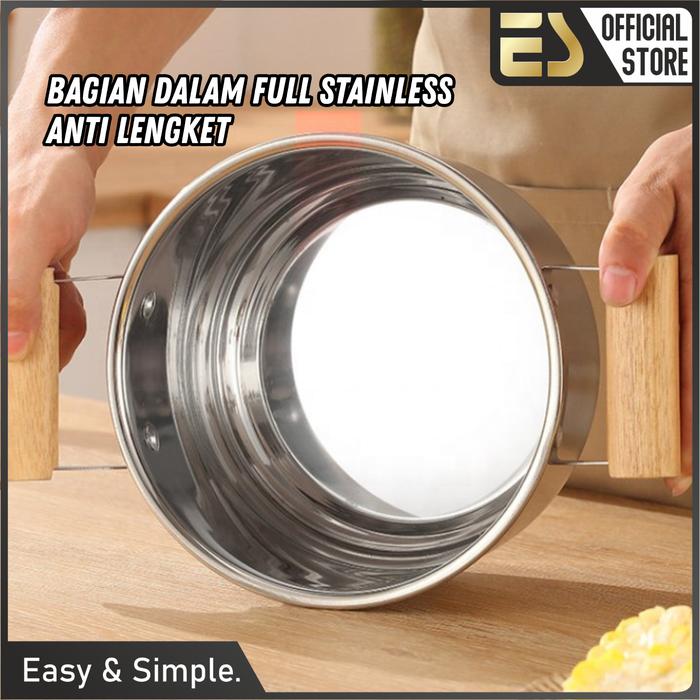 [ES x Suanvinzlie] Panci Sup Stainless Dengan Kukusan Gagang Kayu Tutup Kaca Anti Lengket Ukuran