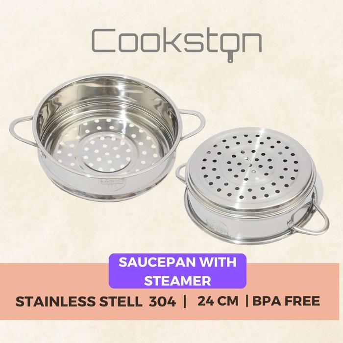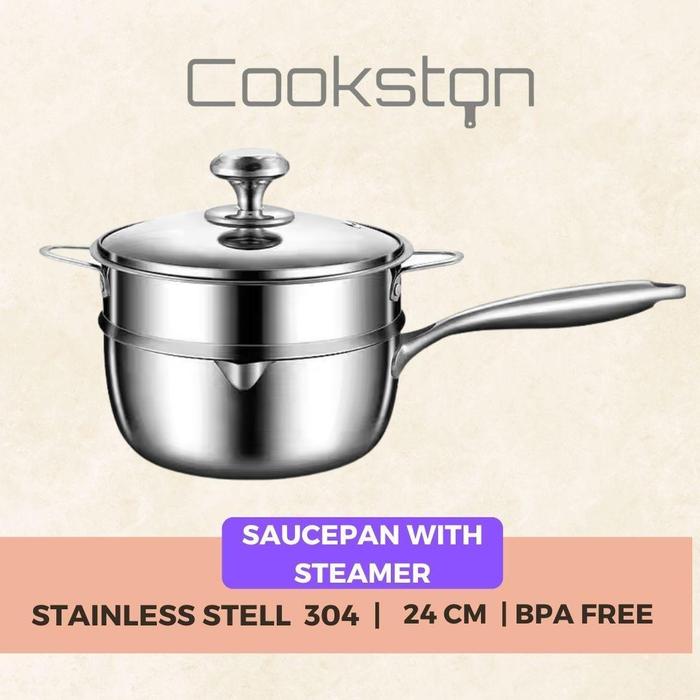 Set Panci Kukus COOKSTON Saucepan 24cm Stainless Steel SUS 304 dengan Steamer - Dapur
